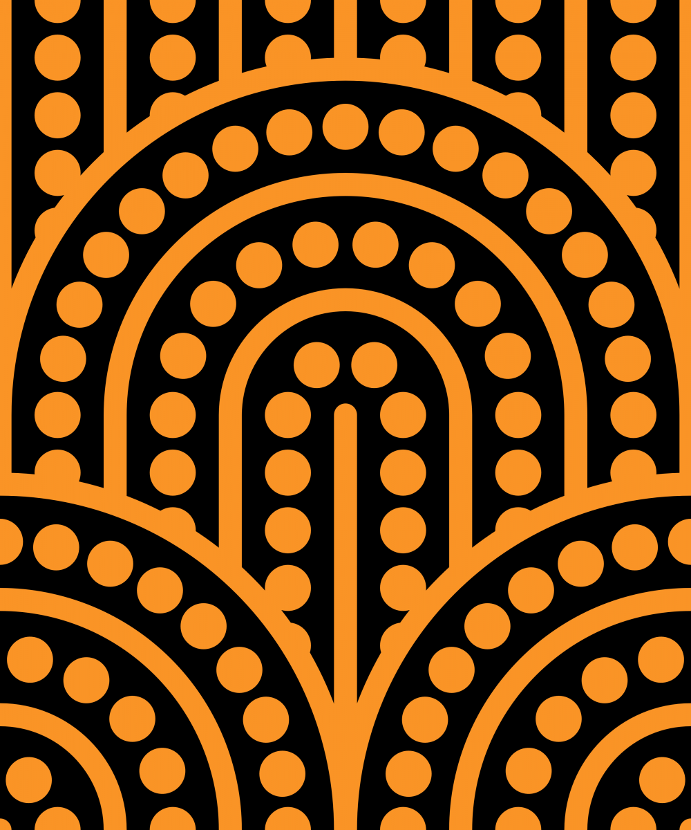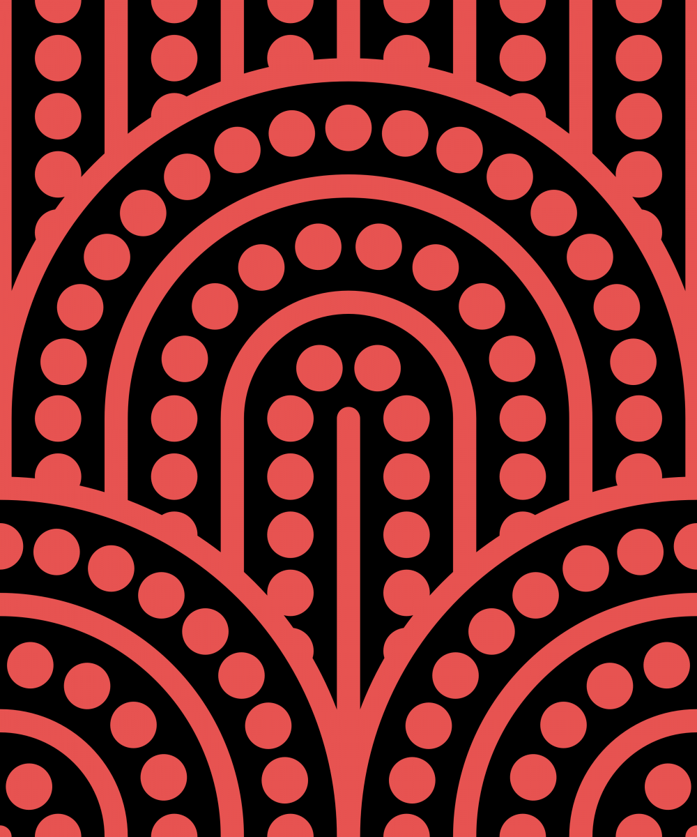 Geometric Pattern: Arch Dot: Black Background / Red Wolf