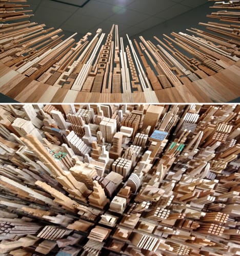 James McNabb has crafted fine wooden designs using lasers and routers, but the band saw drove this stunning series of abstract city landscapes shaped into circles and in some cases patterned after furniture, from tables and shelves to chandeliers — via WebUrbanist