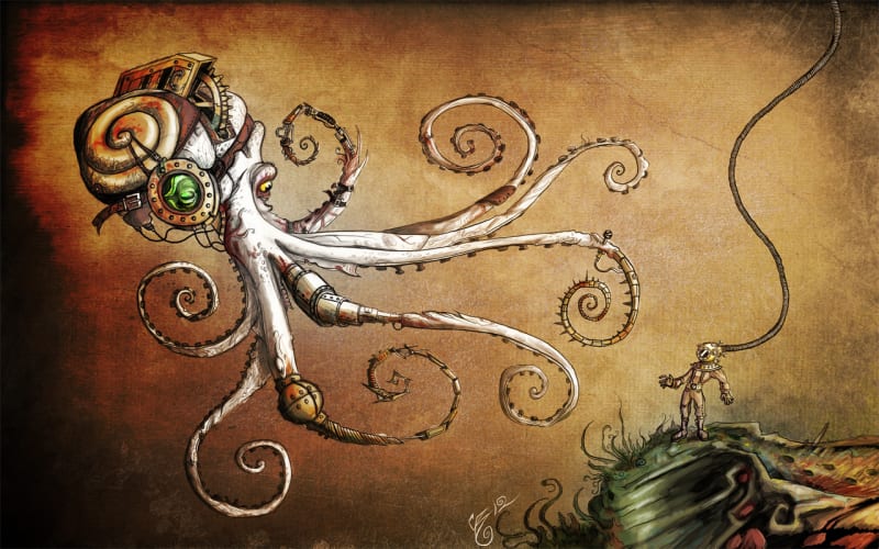 Commission I was given free reign over the subject matter just had to include a steampunk vibe and an octopus — via deviantART