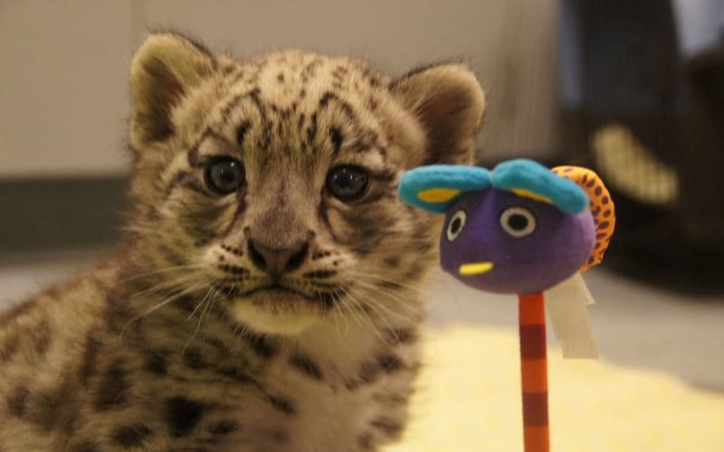 The Snow Leopard cub at Milwaukee County Zoo has been busy playing with new toys and developing his skills. Patrons of the zoo are able to purchase toys and items from a wish list. The toys encourage behavior similar to what is seen in the wild, and they provide enrichment the growing zoo babies need to stimulate their minds and bodies — via ZooBorns