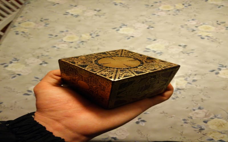 Artist Robin Nylund created his puzzle box using brass sheeting, which were etched with stencils that seem identical to the original Hellraiser movie props. Once the etching process was complete, he then glued the etched brass sheets to a stained wooden, cleaned the excess run-off with some acetone and then finished it off with a coat of lacquer — via Make: