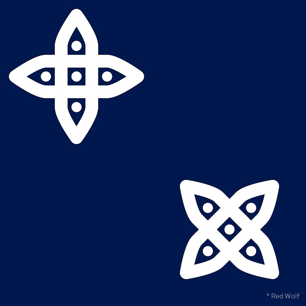 - Geometric Pattern: Four Petal Stylised Flower: Blue (Redbubble | Spoonflower)