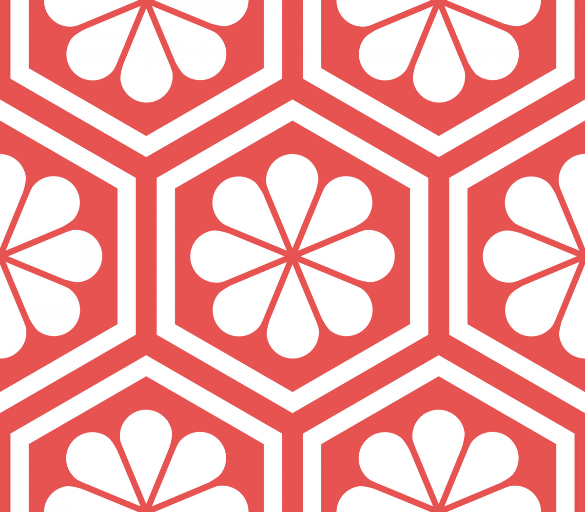- Geometric Pattern: Hexagon Flower: White/Red (Redbubble | Spoonflower)
