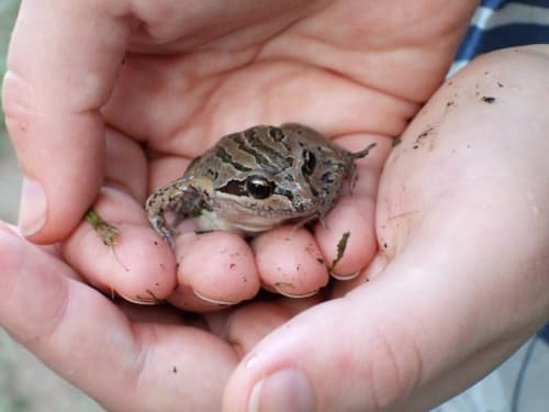 We were rudely awakened the other night by Olaf (the cat) depositing a slimy frog on our faces at 3am. Happily N had been watching a TV show about the care and feeding of frogs earlier that day, so she leapt out of bed, crafted a frog habitat out of an old pot and a cake net, then went back to sleep.