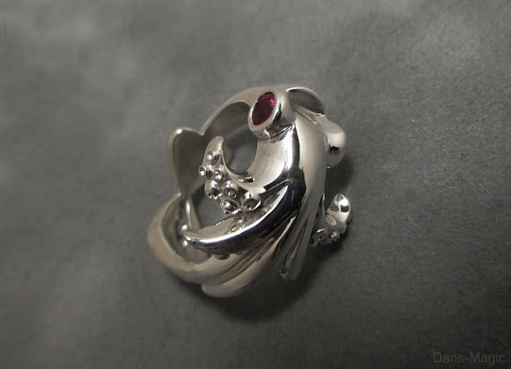Squid ring. The larger the ring size the longer the two shooter tentacles will be. Genuine ruby eyes. Sterling silver — via Etsy