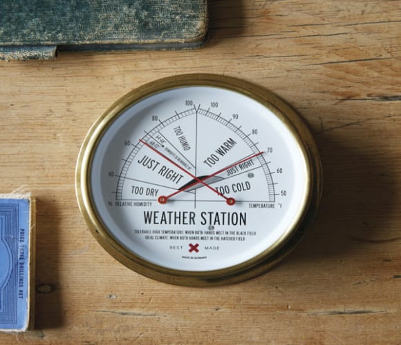 Nobody said thermometers needed to be embedded with complex algorithms to be smart. Best Made Co.’s Weather Station is incredibly clever — and it’s completely analogue. Two needles report on temperature and relative humidity—gauging the feel