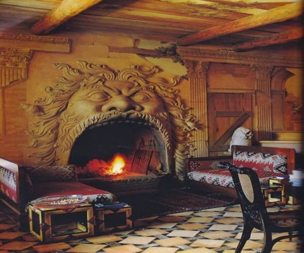 The Italian fashion designer Elsa Peretti purchased an old watchtower on the coast of Tuscany as a vacation home. It was called La Torre. The Sixteenth Century structure was built for military purposes, so Peretti had to have it redesigned with comfort in mind. So she hired architect Renzo Mongiardino to renovate it. Mongiardino took the old fort and turned it into a fairytale castle by covering the walls with three-dimensional images of fantasy scenes, including this stunning fireplace that looks like a giant’s mouth — via Neatorama