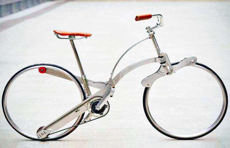 Few folding bikes can boast such compact proportions (even when fully collapsed) as this umbrella-sized wonder you can sling at your side or slide into your shoulder bag. The Sada Bike bends the basic assumptions of bicycle design, but not in the same fashion as small-bike solutions. Instead of reducing the size of essential elements, which creates an awkward riding experience, Sada trades a rigid chassis and support-providing spokes for a jointed lightweight frame and reinforced rims that require less material — via Urbanist