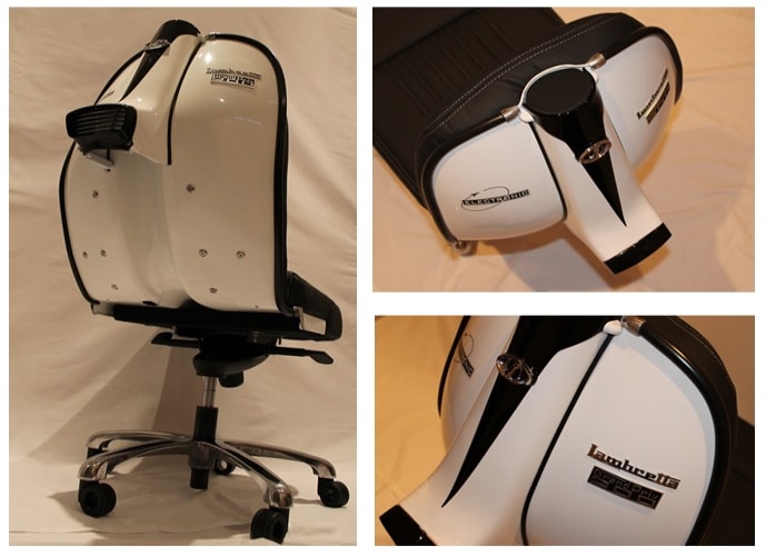 Fancy wheeling round the office on a classic scooter? Well, we can’t help with that, but we can offer the next best thing — the Lambretta office chairs by Iconic Design. The work of Jim Piester of Iconic Design in South Africa (but available to buy worldwide), the chairs are based on the leg shield of a classic Lambretta scooter, with the model down to your choice, as well as the colour and the detailing, as well as the leather for the actual seating — via Retro To Go